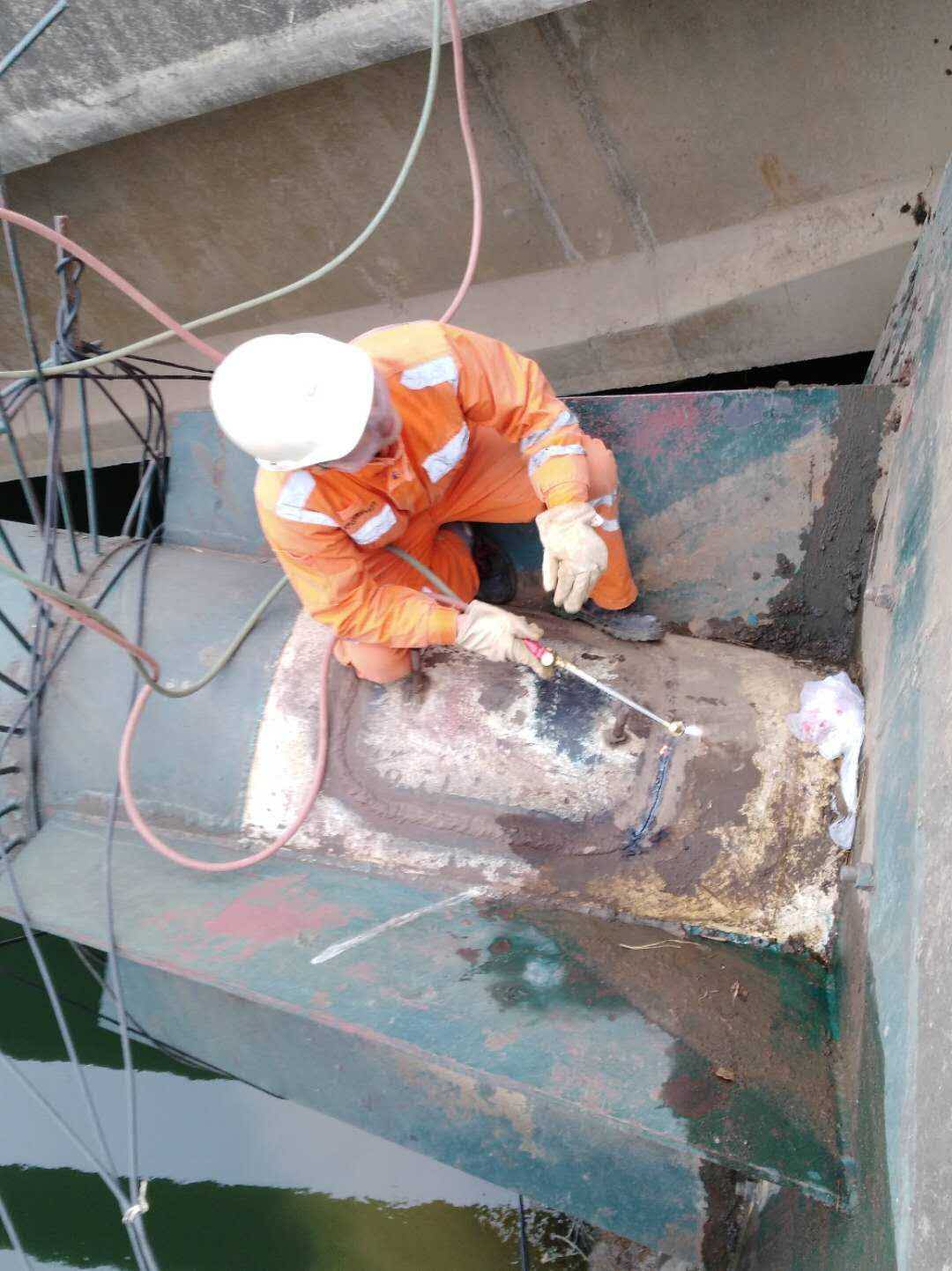接到指令,整裝待命的搶修人員即刻趕到現(xiàn)場。經(jīng)查,該管由于嚴(yán)重的地基下沉導(dǎo)致原來的焊縫再次斷裂,漏點在彩虹橋橋墩和引橋結(jié)合部位的地面下,管道位置特殊且埋深較深,不可能進(jìn)行大面積開挖?,F(xiàn)場人員經(jīng)過維修可能性和安全性評估后后,決定采取從旁邊跨河管道上開鑿作業(yè)孔進(jìn)入漏水點維修的方案。作業(yè)孔打開后,搶修人員進(jìn)入空間狹窄潮濕的管道半蹲著進(jìn)行維修,氧焊、加強(qiáng)劤加固、涂防腐層,維修工作有條不紊地進(jìn)行著。