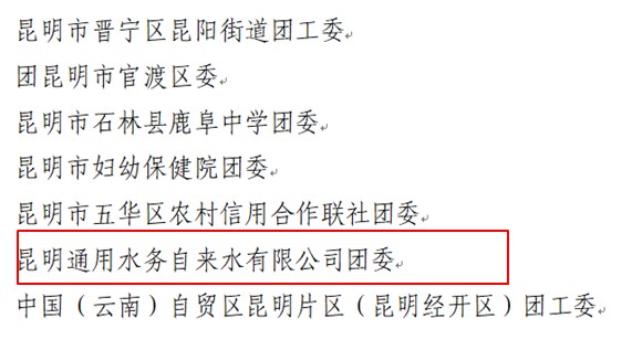 昆明通用水務(wù)自來水有限公司團(tuán)委榮獲“昆明市五四紅旗團(tuán)委”